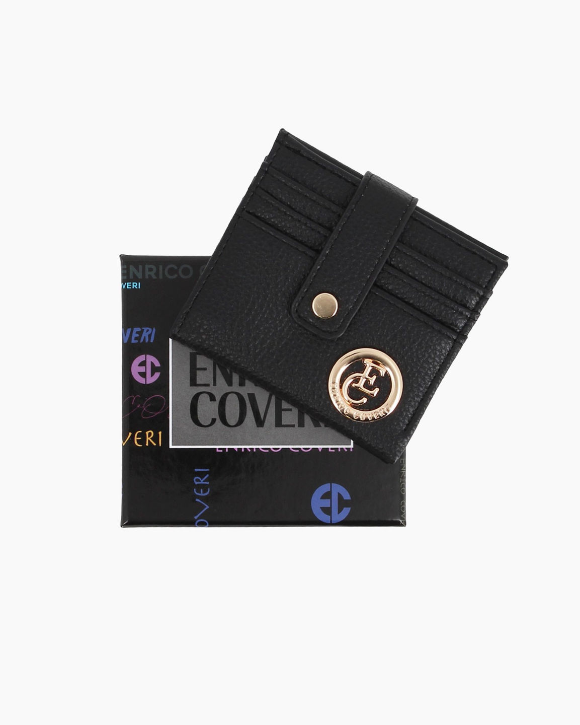 ENRICO COVERI - Portacarte nero da donna con pattina e logo