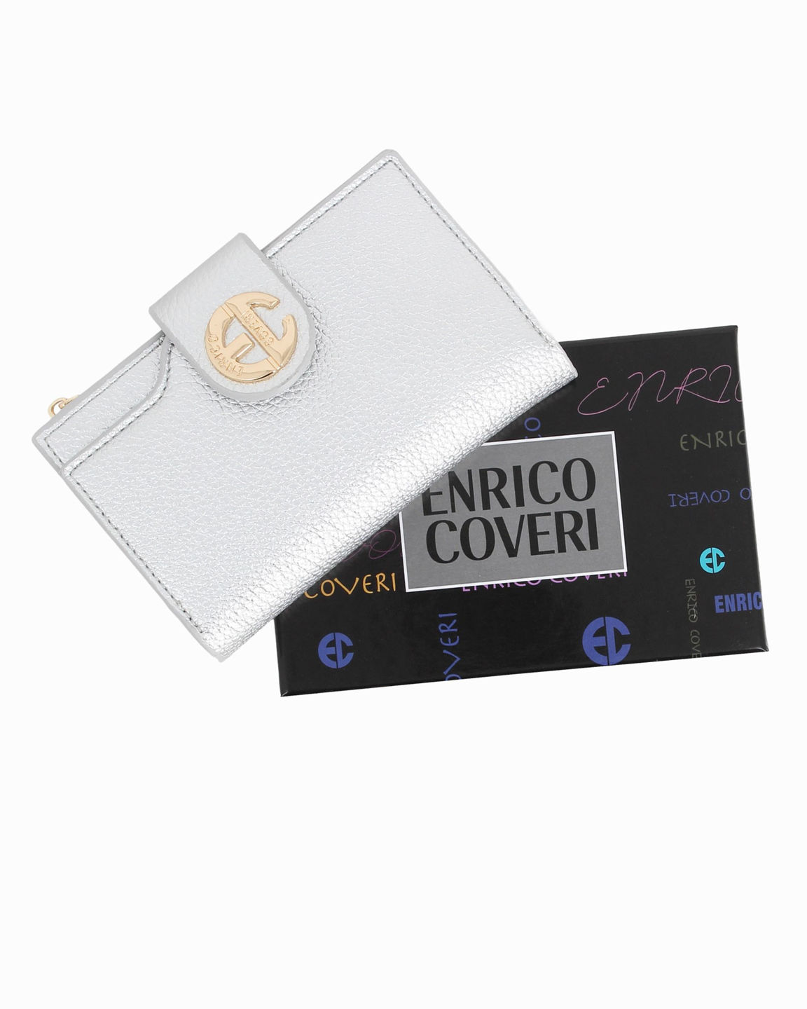 ENRICO COVERI - Portafoglio argento da donna con pattina e tasca posteriore