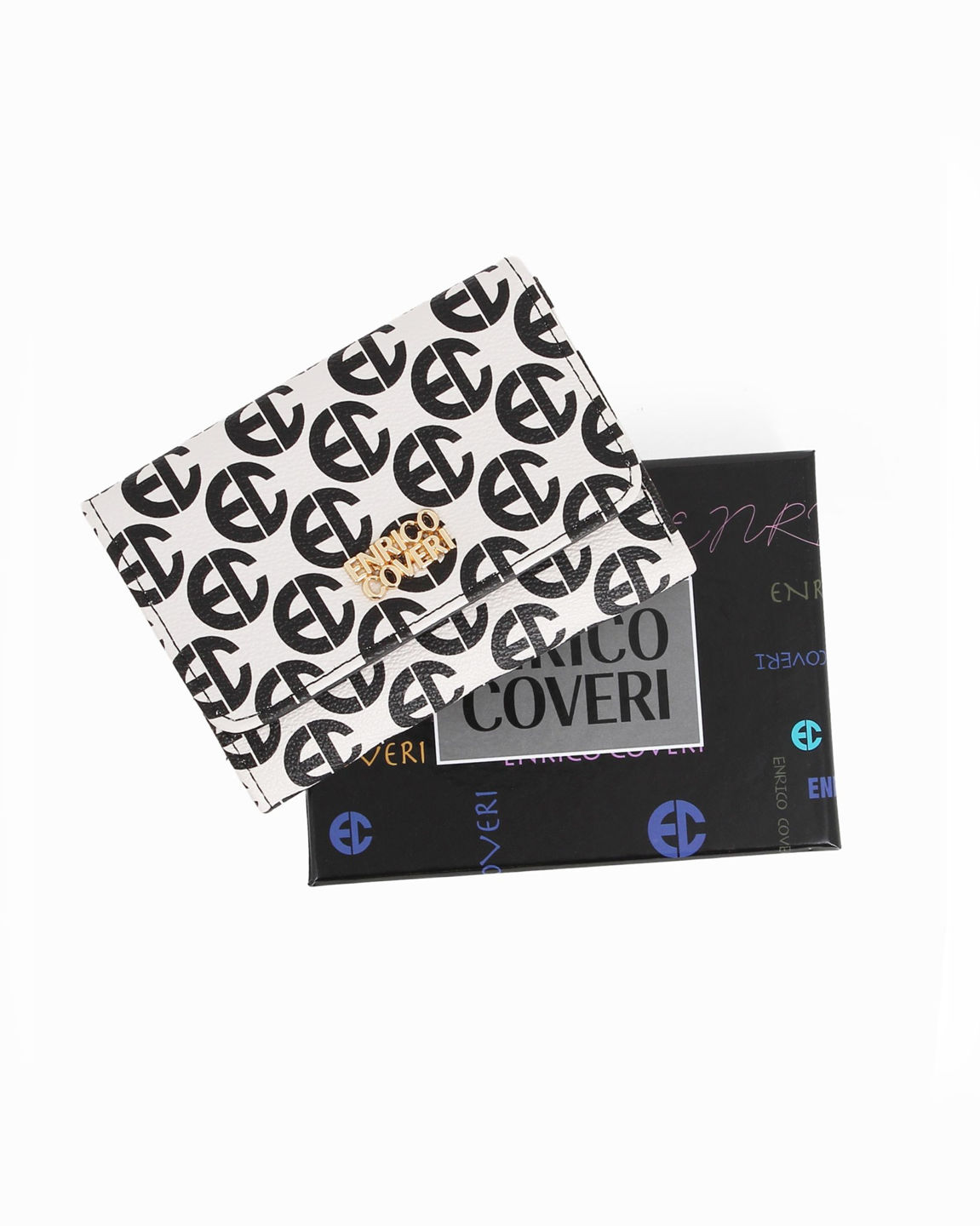 ENRICO COVERI - Portafoglio bianco e nero loggato da donna con patta e tasca posteriore