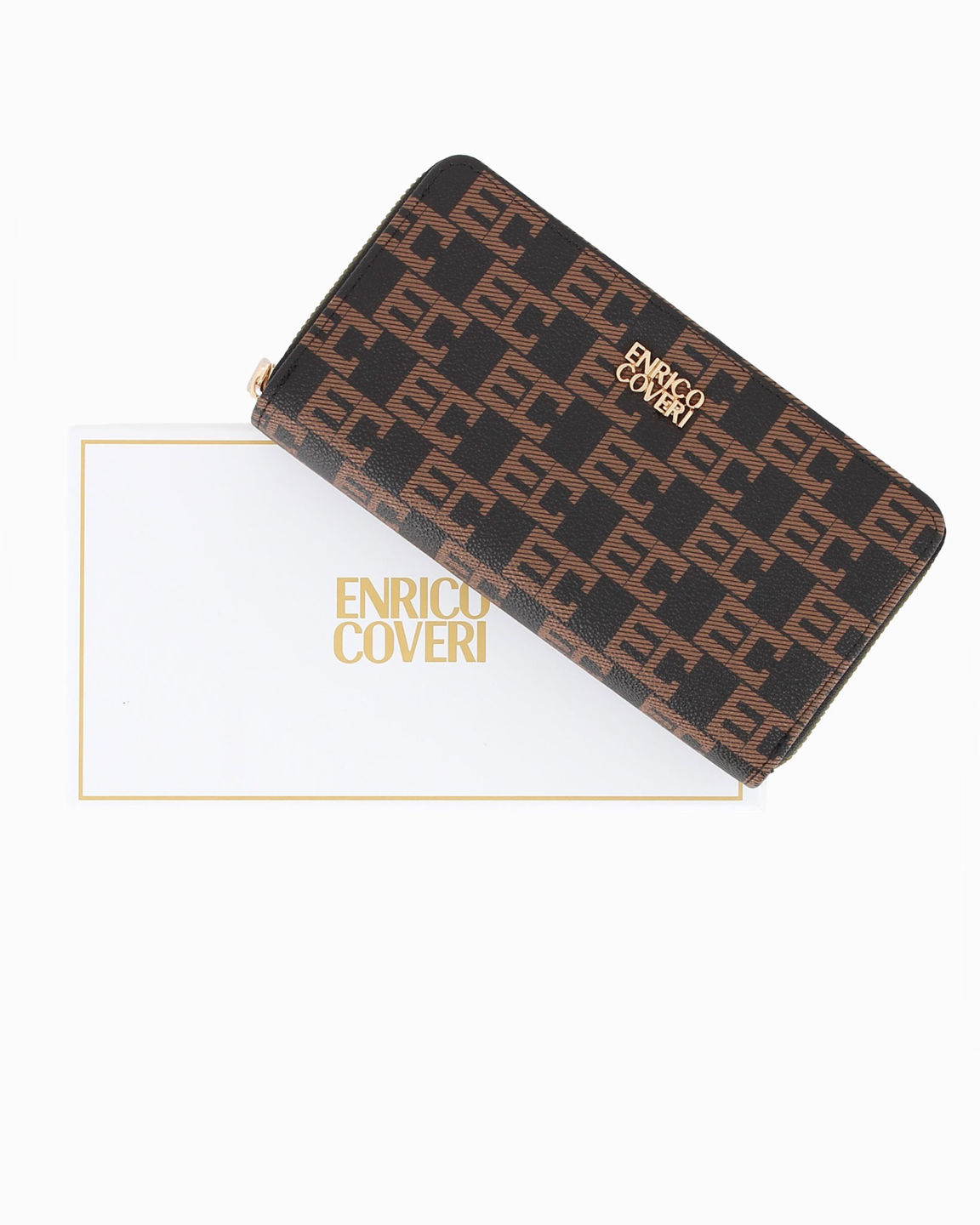 ENRICO COVERI - Portafoglio taupe loggato da donna con doppia cerniera