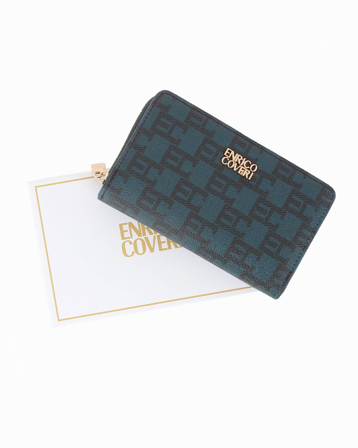 ENRICO COVERI - Portafoglio ottanio loggato da donna con due scomparti principali