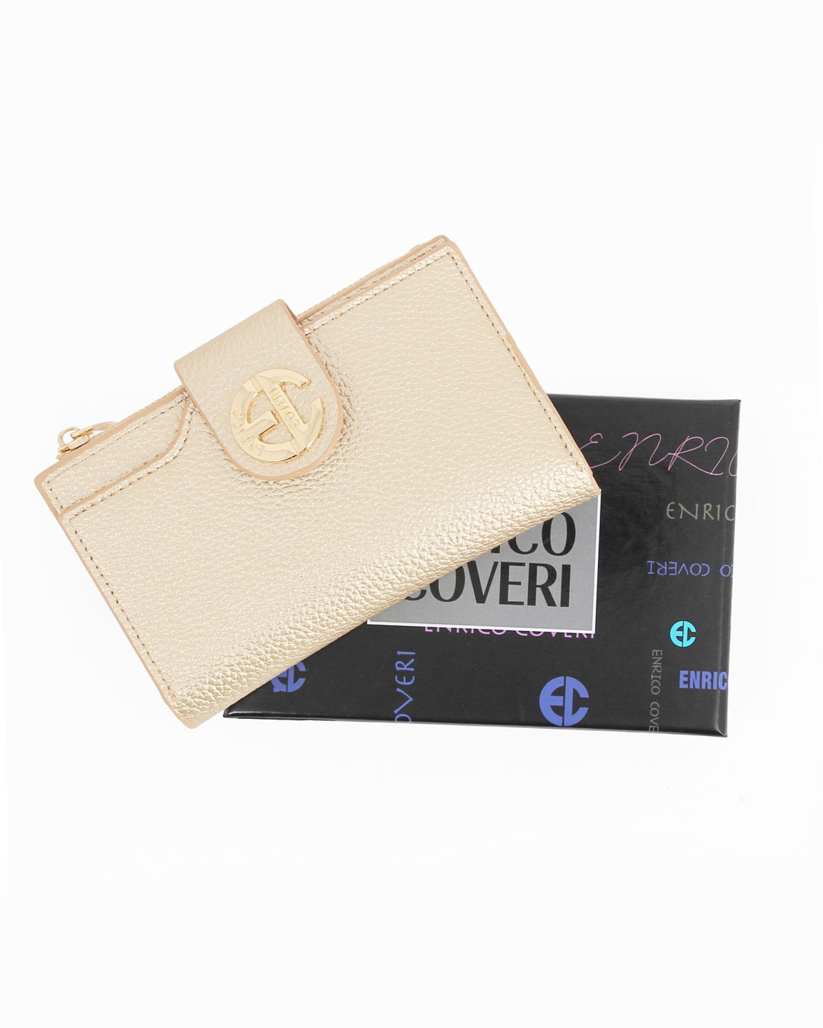 ENRICO COVERI - Portafoglio beige da donna con pattina e tasca posteriore