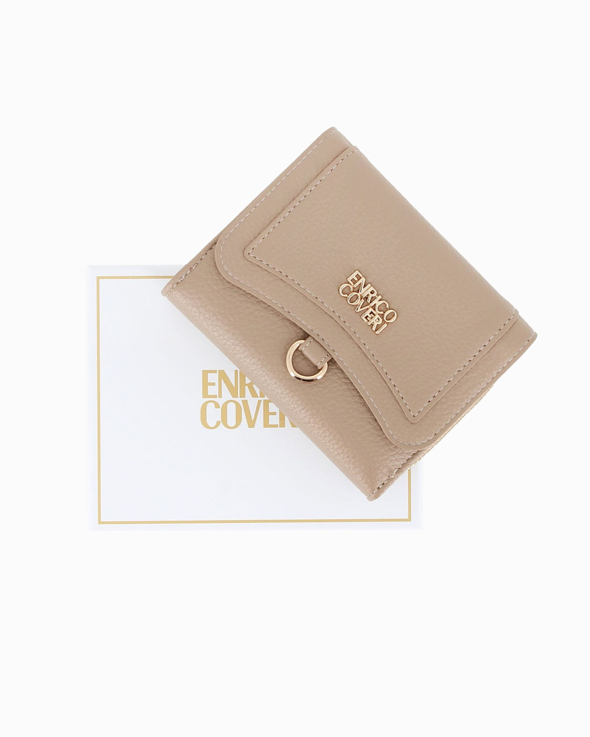 ENRICO COVERI - Portafoglio taupe da donna con patta e tasca posteriore