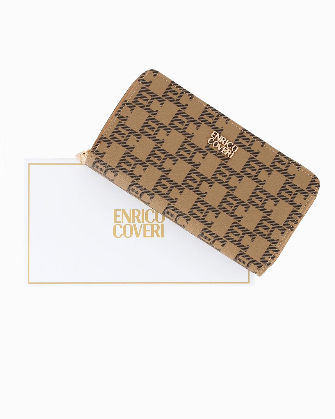 ENRICO COVERI - Portafoglio taupe loggato da donna con doppia cerniera