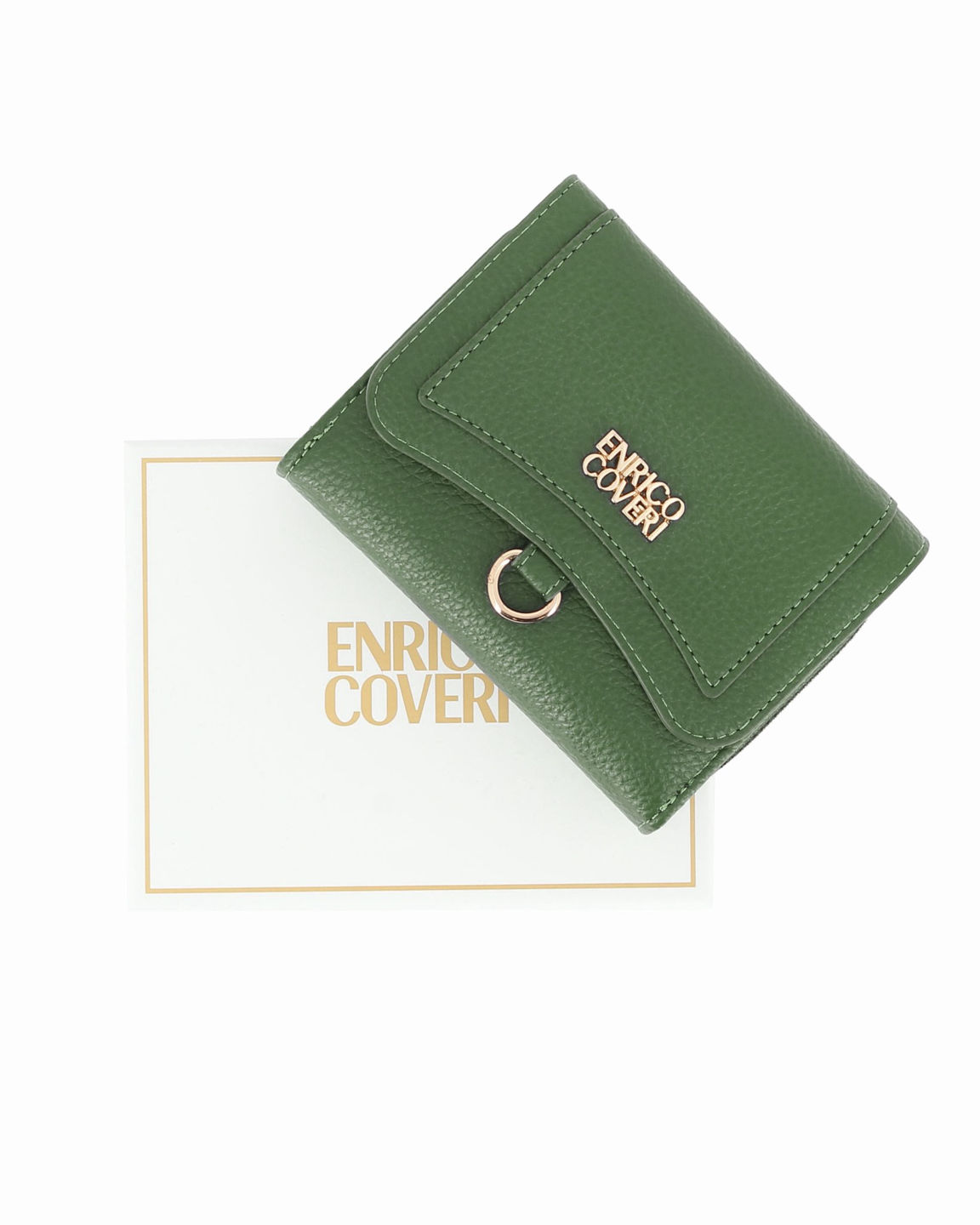ENRICO COVERI - Portafoglio verde da donna con patta e tasca posteriore