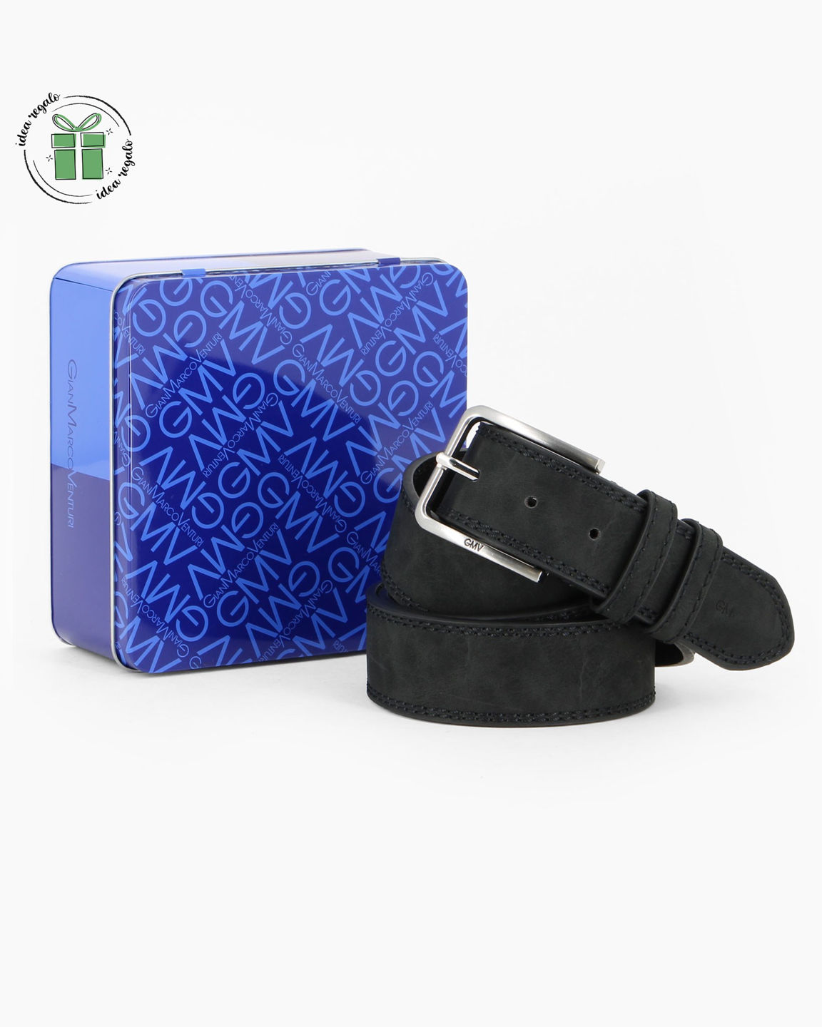 GIANMARCO VENTURI - Cinta nera da uomo con scatola in latta