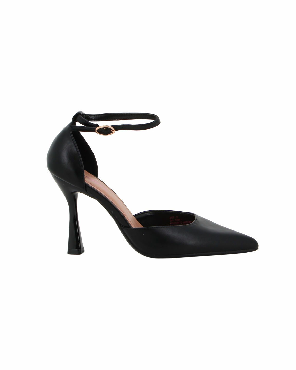 GLOBO ROSA - Décolleté nera con sottopiede in VERA PELLE e cinturino alla caviglia, tacco 9,5CM
