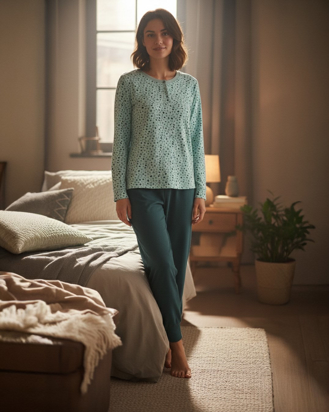 INFIORE - PIGIAMA LOVE ME MANICA LUNGA VERDE DA DONNA