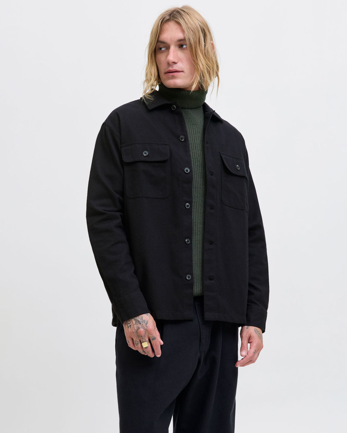 JACK&JONES - GIACCA CAMICIA NERA DA UOMO IN FLANELLA