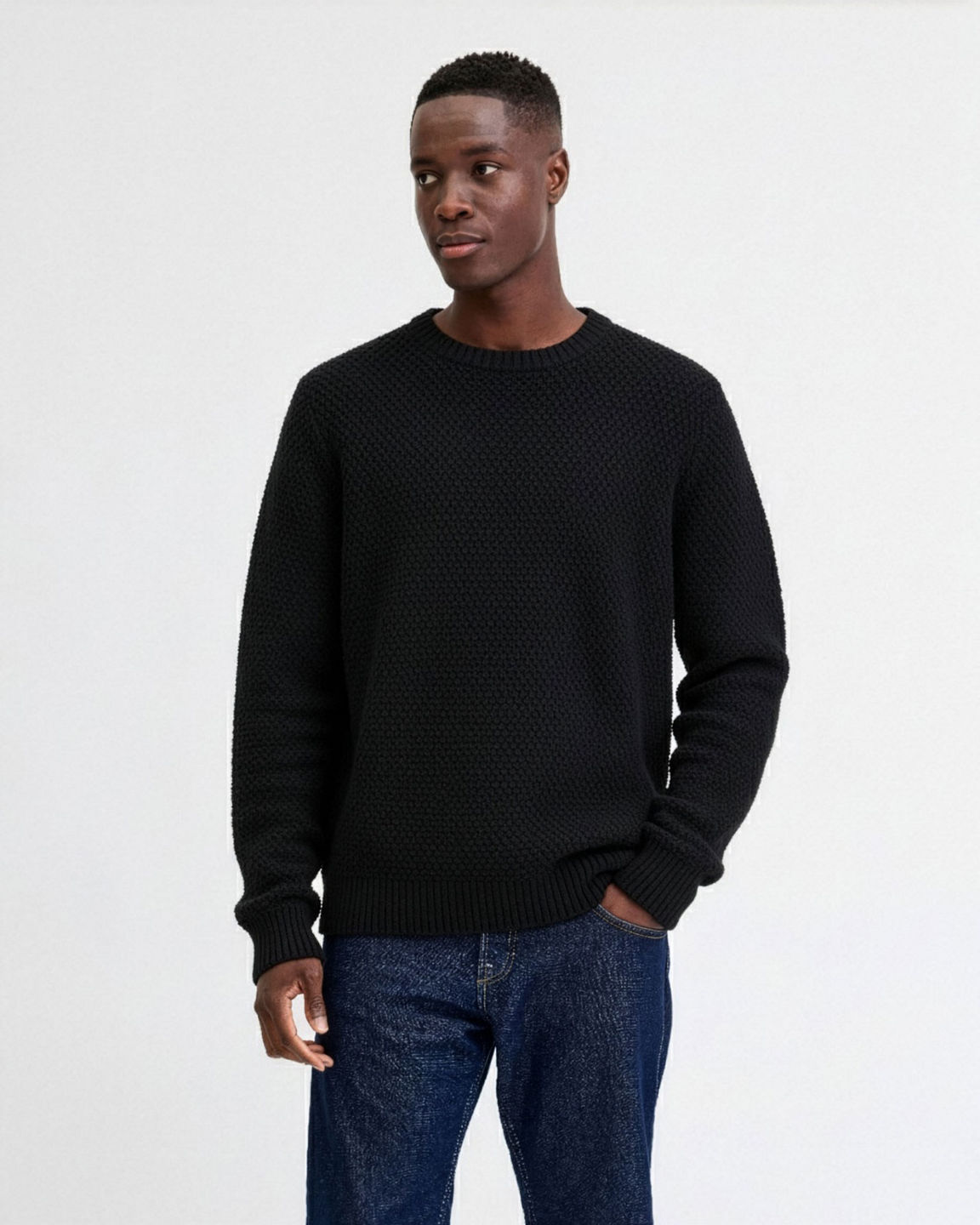 JACK&JONES - PULLOVER GIROCOLLO NERO DA UOMO