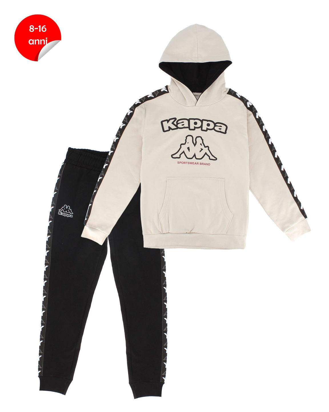 KAPPA - COMPLETO TUTA FELPA PANNA CON CAPPUCCIO DA RAGAZZO