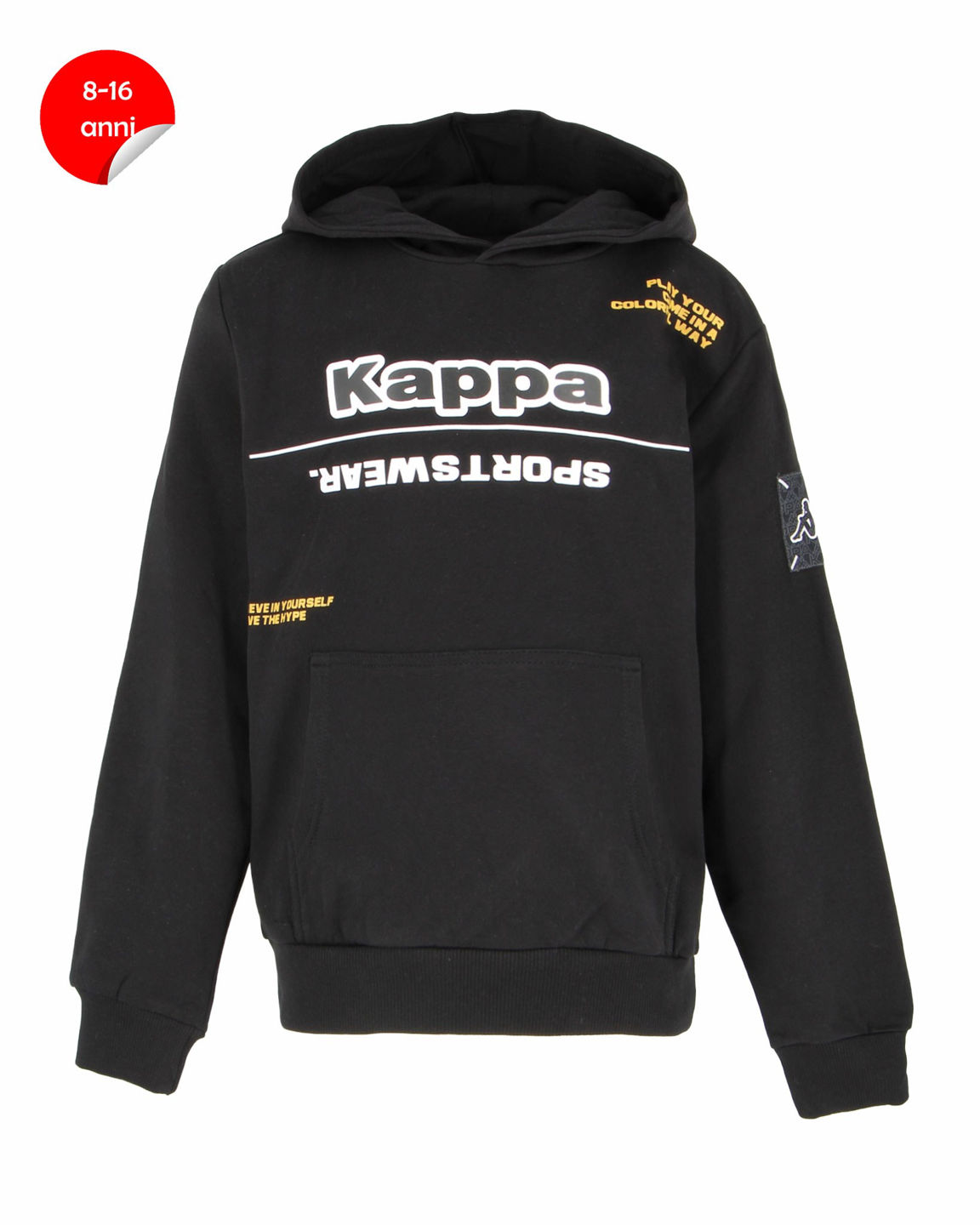 KAPPA - FELPA NERA DA BAMBINO CON CAPPUCCIO