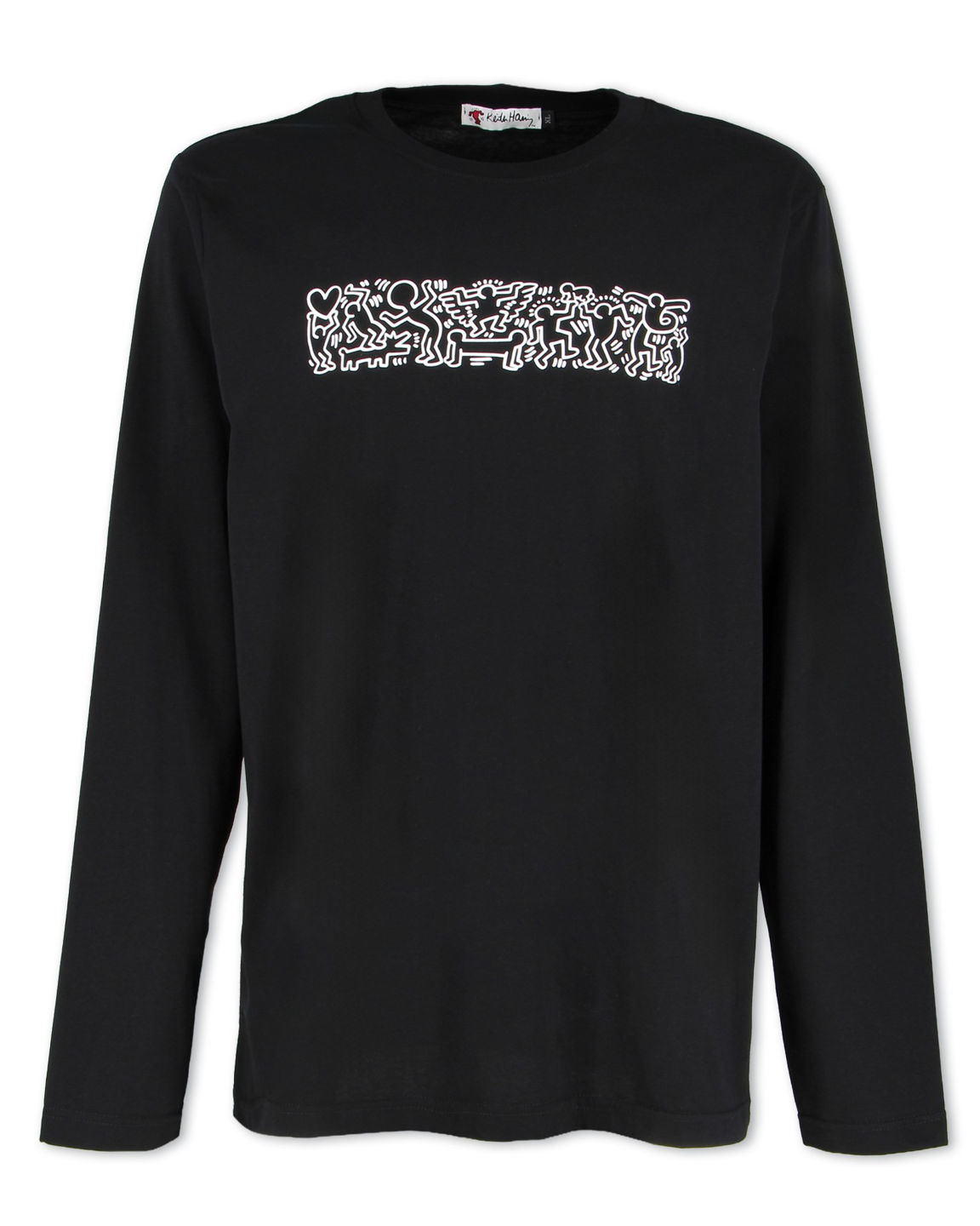 KEITH HARING - Tshirt nera a manica lunga da uomo con stampa skate
