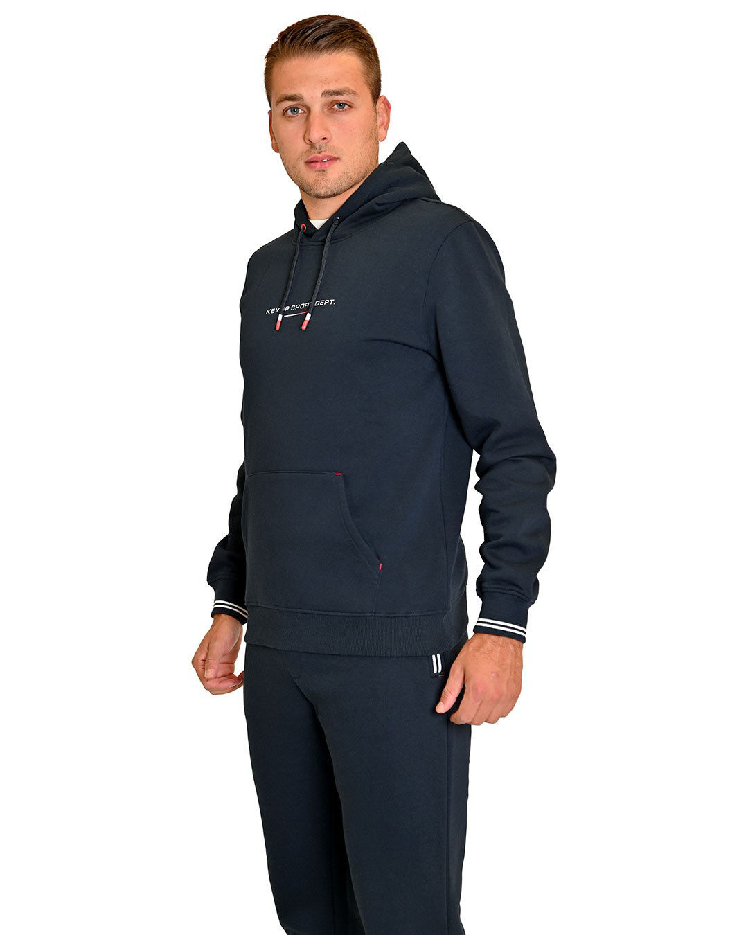 KEY UP - FELPA BLU DA UOMO CON CAPPUCCIO E STAMPA FRONTALE