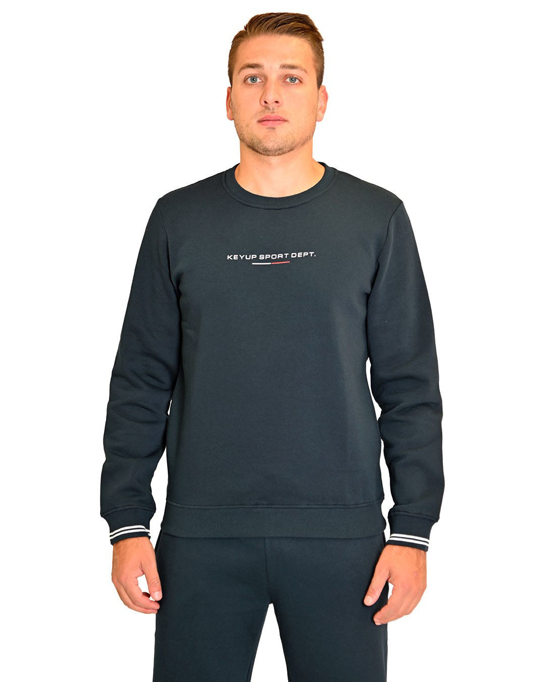 KEY UP - FELPA BLU GIROCOLLO DA UOMO CON DETTAGLIO POLSINI