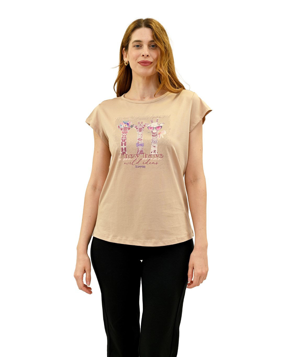 Immagine di KEY UP - T-SHIRT MEZZA MANICA DONNA BEIGE CON STAMPA FRONTALE-  5S886/3468