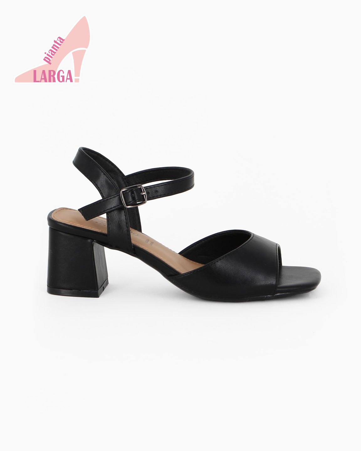 LADY GLOBO - Sandalo nero con sottopiede in VERA PELLE, calzata comoda, tacco 5,5CM