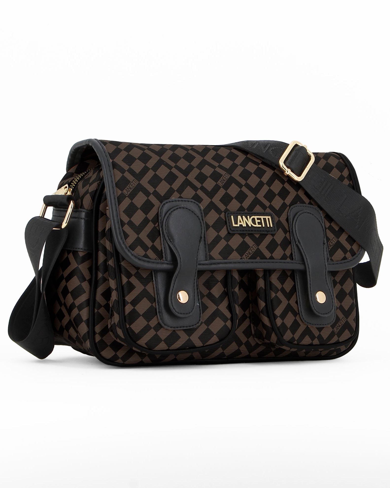 LANCETTI - Borsa nera con patta e doppia tasca frontale