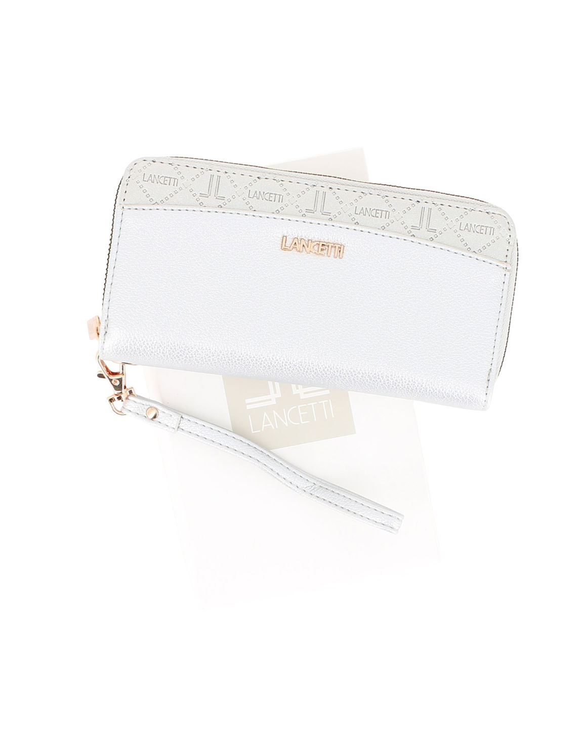 LANCETTI - Portafoglio argento con due scomparti principali, polsiera removibile