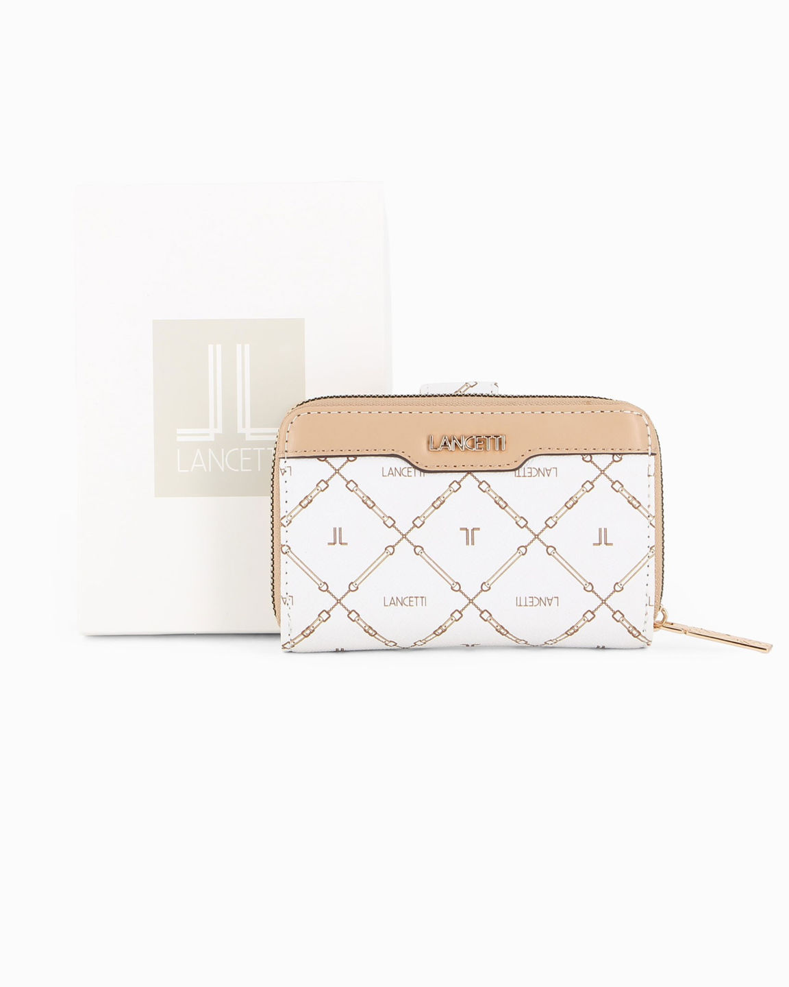 LANCETTI - Portafoglio bianco loggato con due scomparti principali