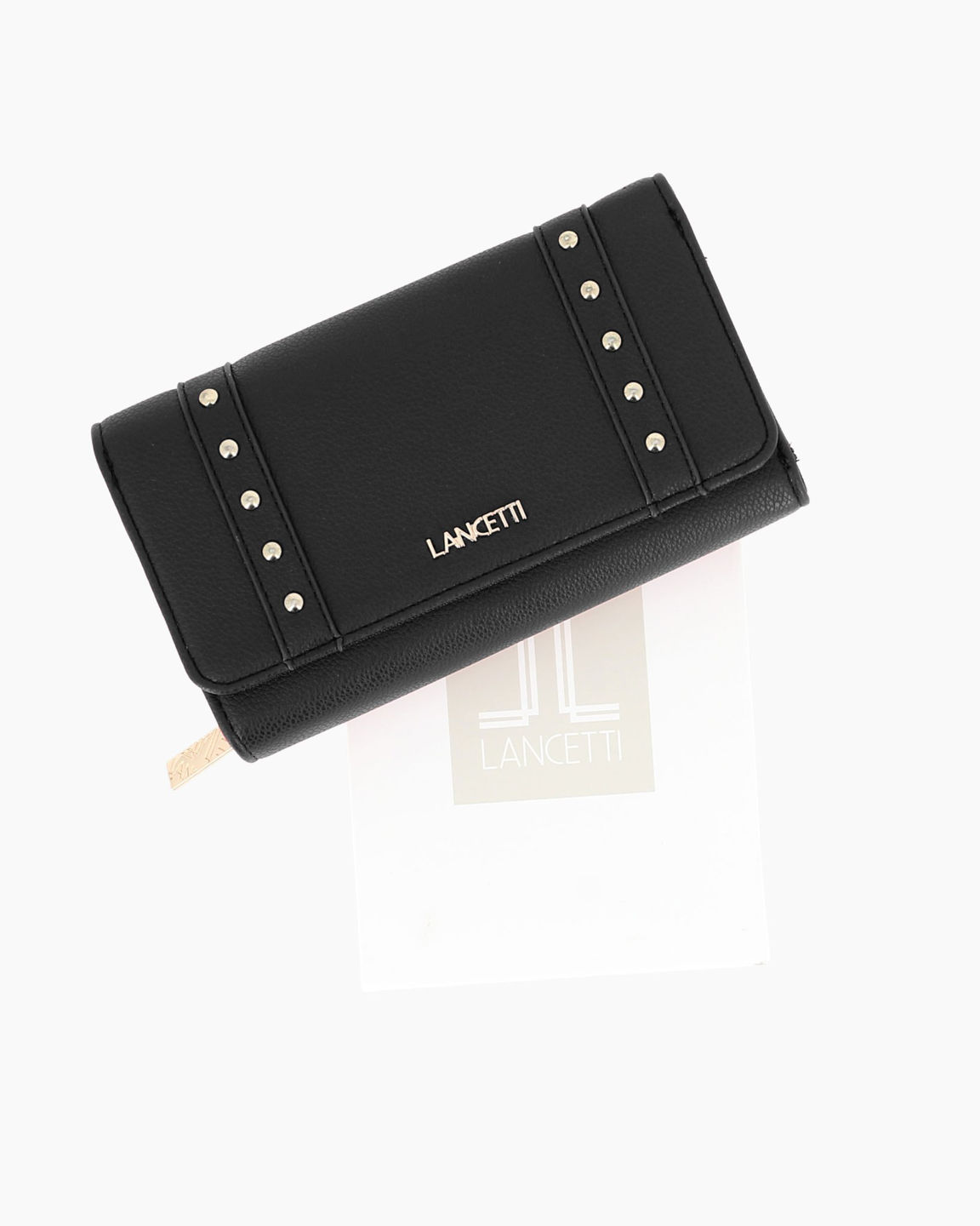 LANCETTI - Portafoglio nero da donna con dettaglio borchie sulla patta