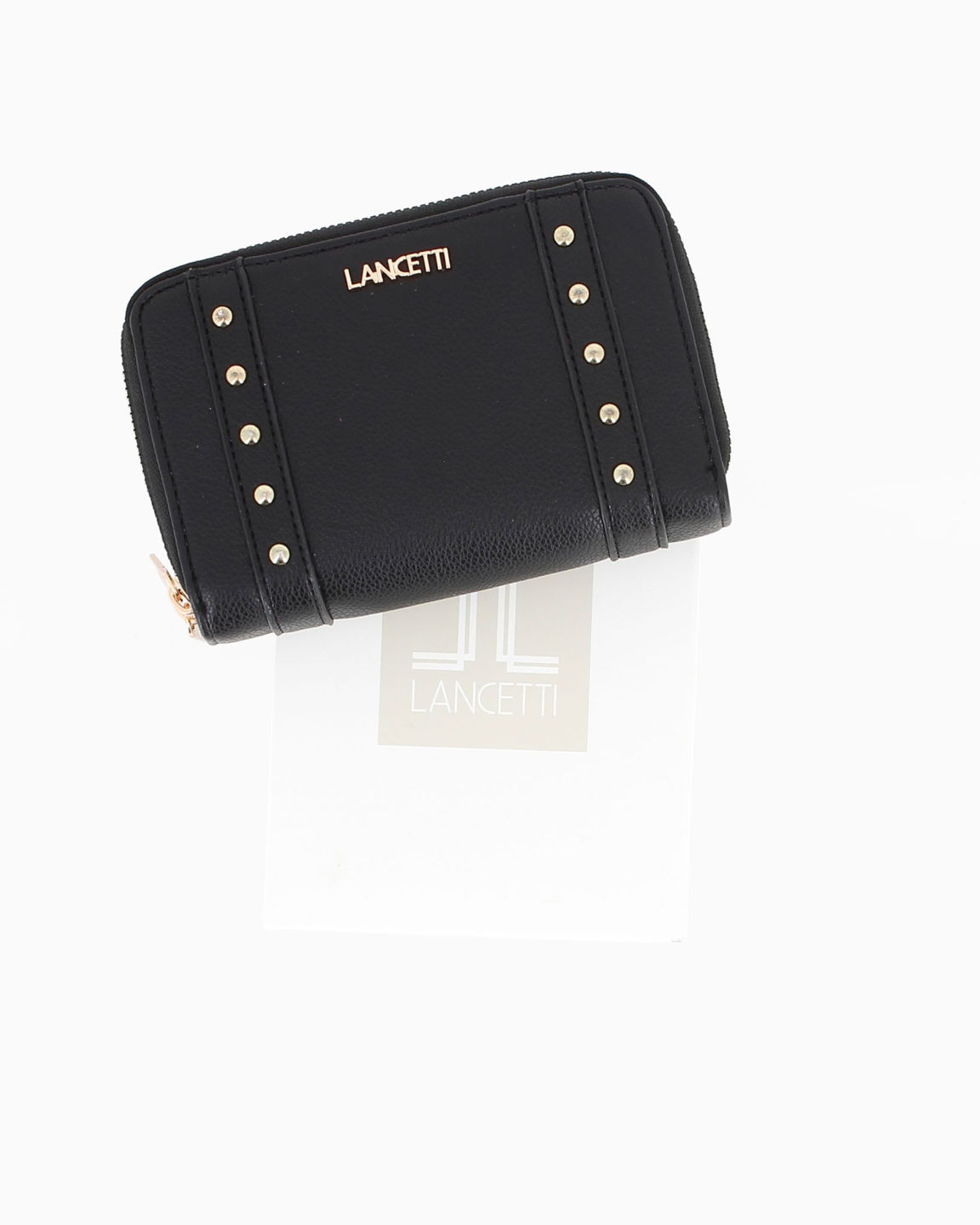 LANCETTI - Portafoglio nero da donna con doppia cerniera e dettaglio borchie