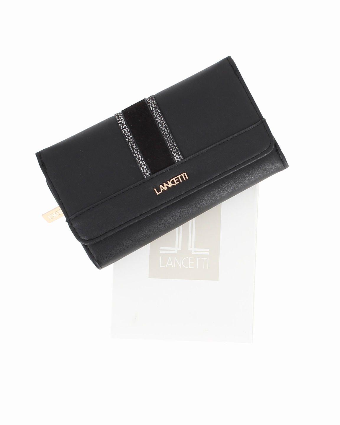 LANCETTI - Portafoglio nero da donna con inserto scamosciato sulla patta