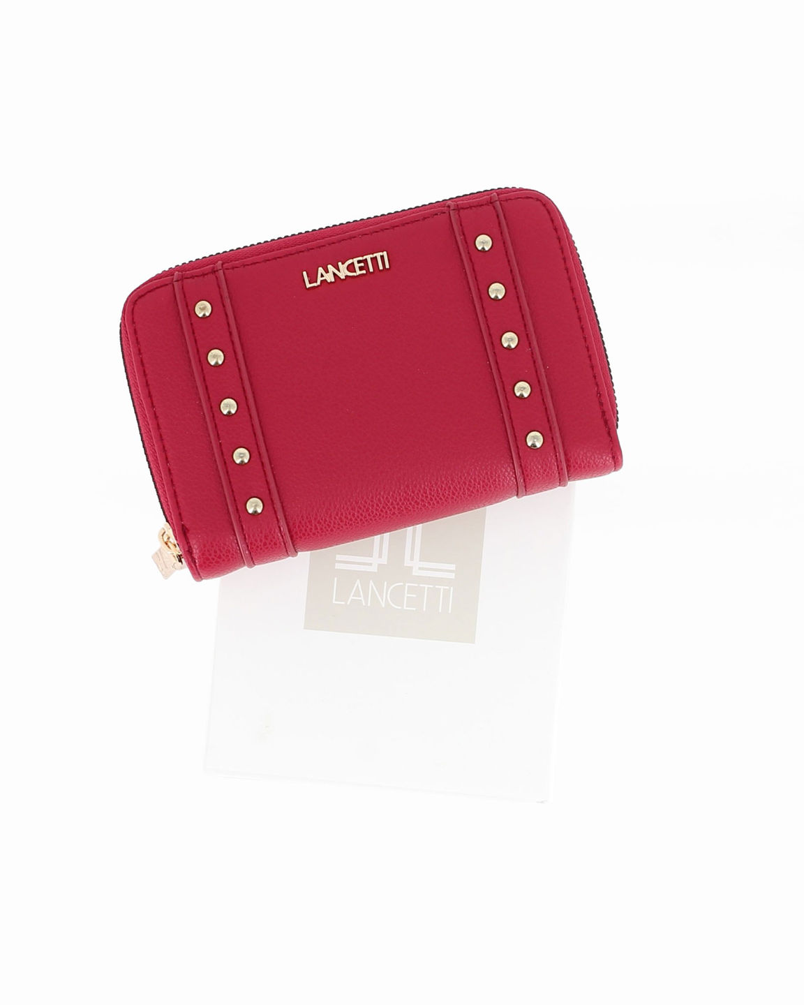 LANCETTI - Portafoglio rubino da donna con doppia cerniera e dettaglio borchie