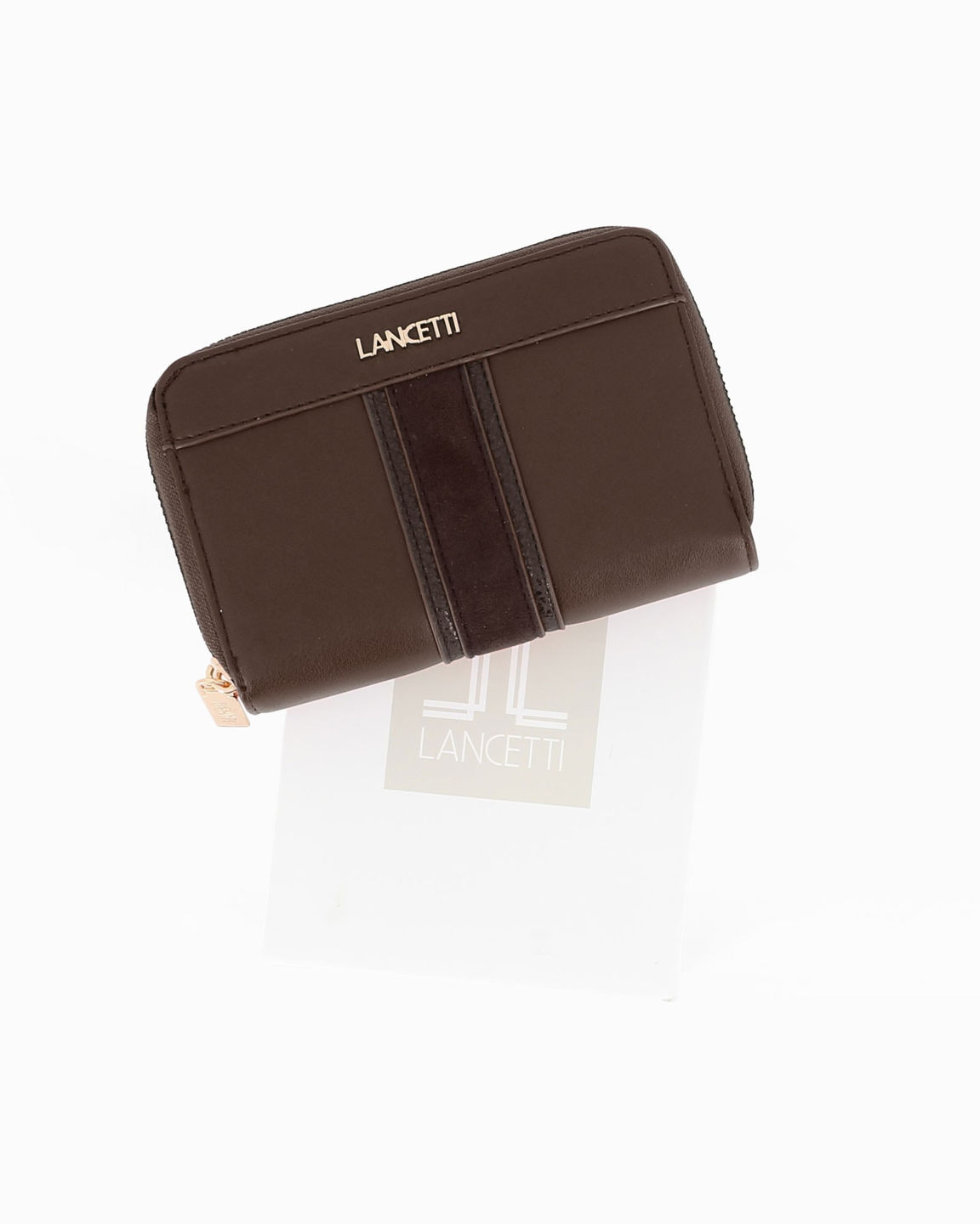 LANCETTI - Portafoglio testa moro da donna con doppia cerniera e inserto scamosciato