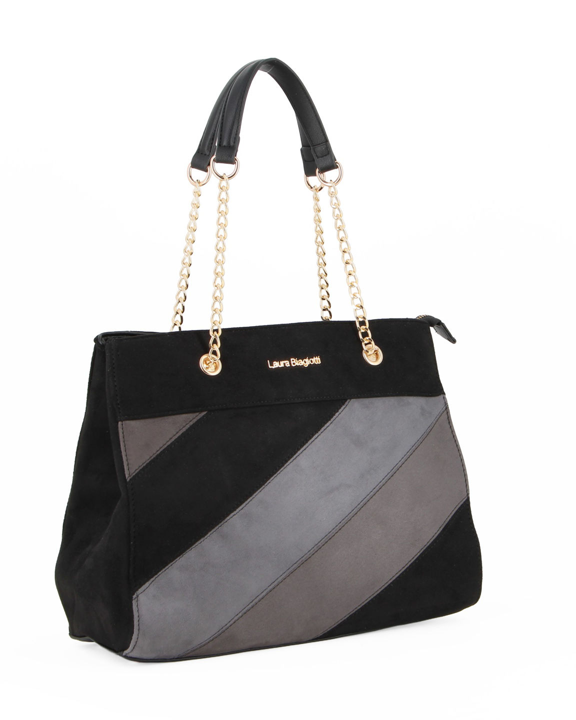 LAURA BIAGIOTTI - Borsa a due manici scamosciata nera con disegno frontale grigio