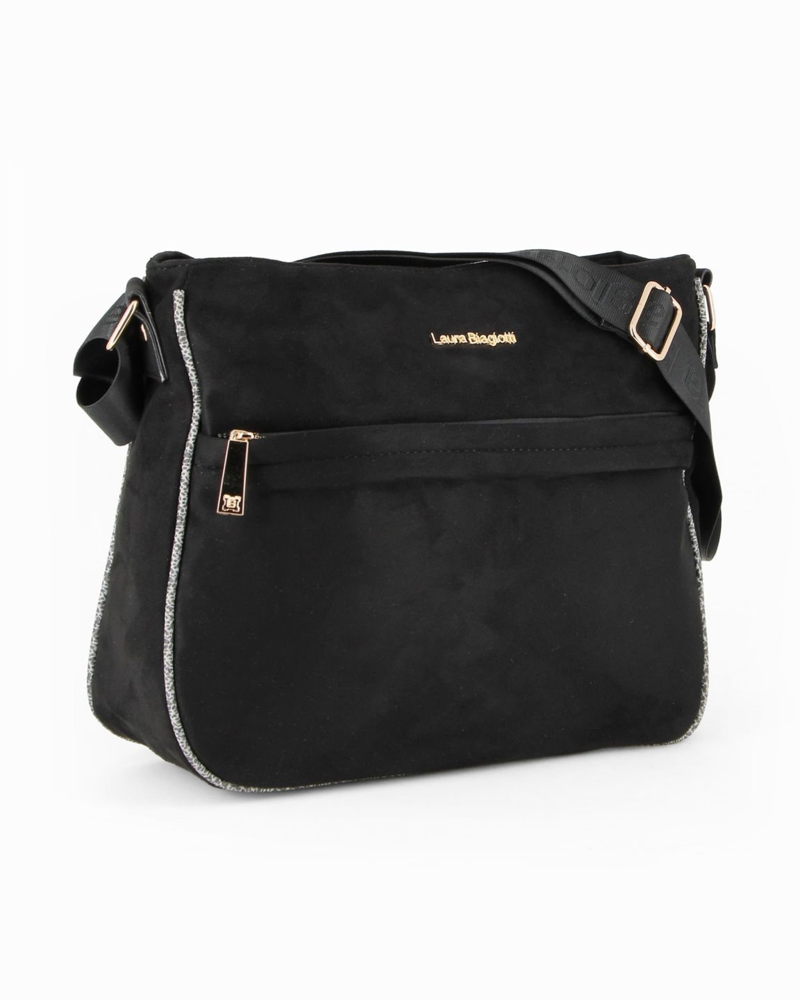 LAURA BIAGIOTTI - Borsa a tracolla scamosciata nera con tasca frontale e posteriore
