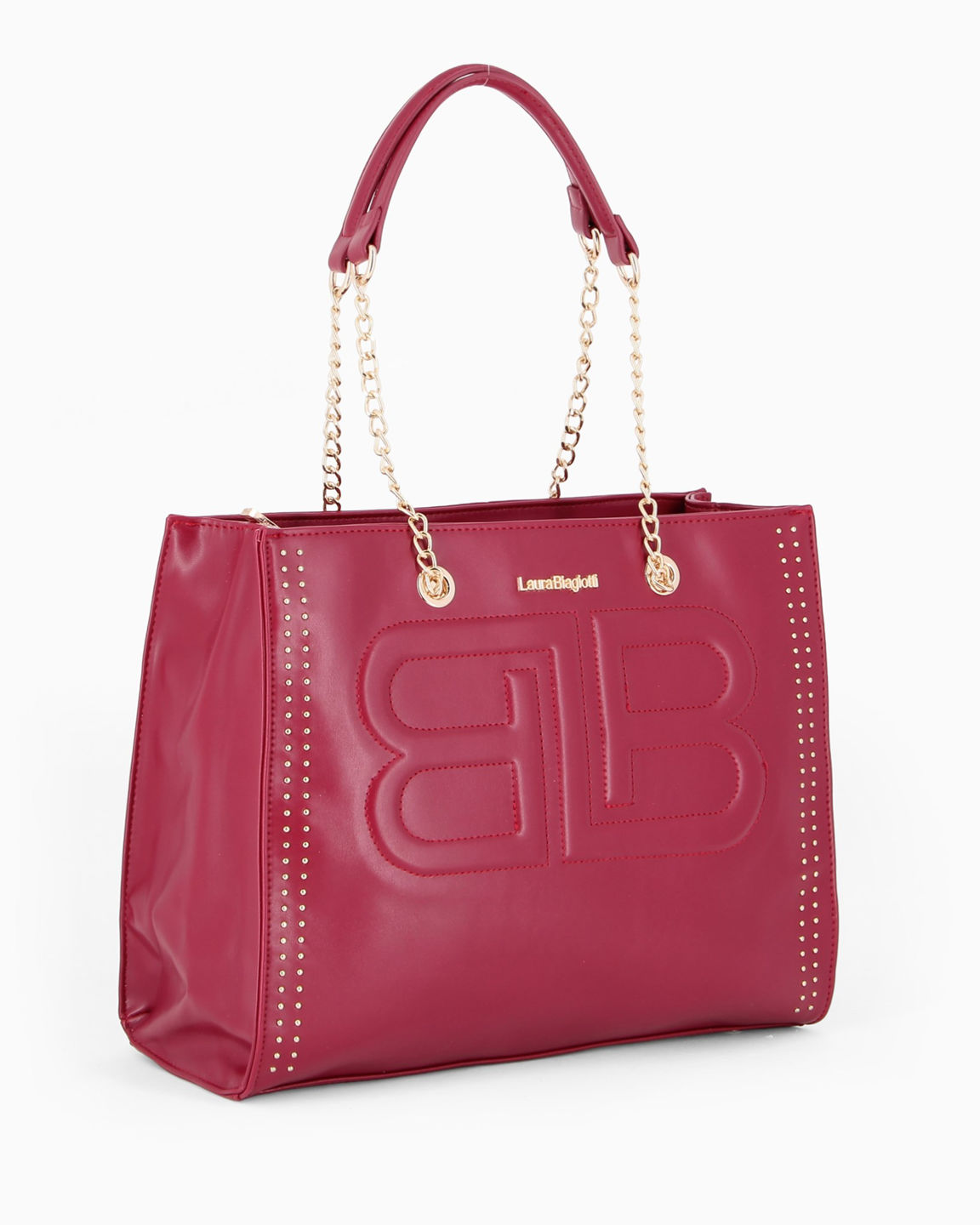 LAURA BIAGIOTTI - Borsa due manici rubino con borchie e logo frontale