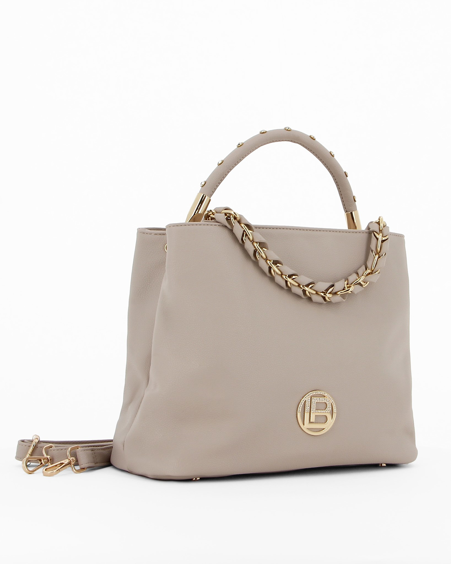 LAURA BIAGIOTTI - Borsa tortora da donna con diamantini sul manico e tracolla rimovibile