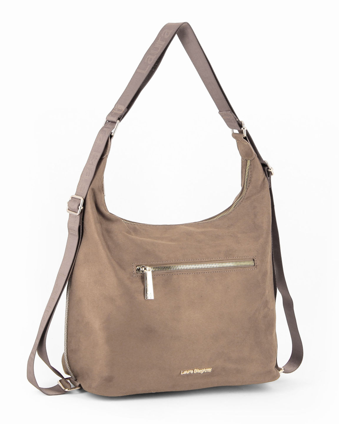 LAURA BIAGIOTTI - Borsa/Zaino scamosciata terra con tasca frontale e posteriore