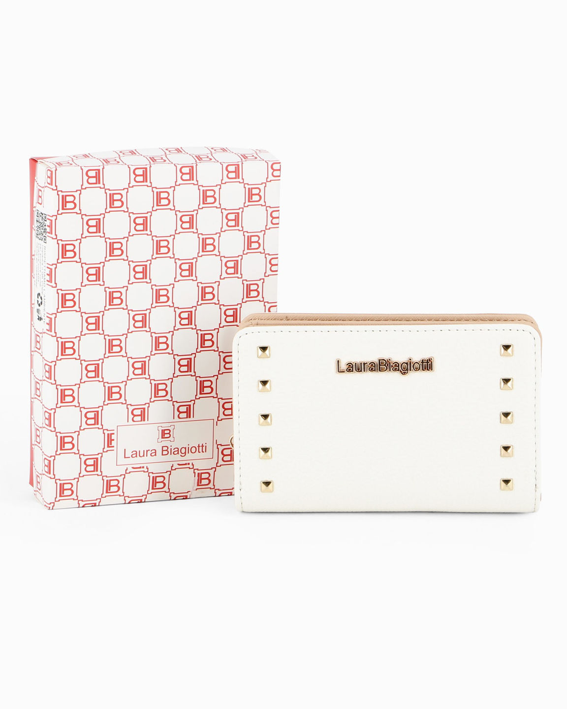 LAURA BIAGIOTTI - Portafoglio bianco con tre scomparti e dettaglio borchie