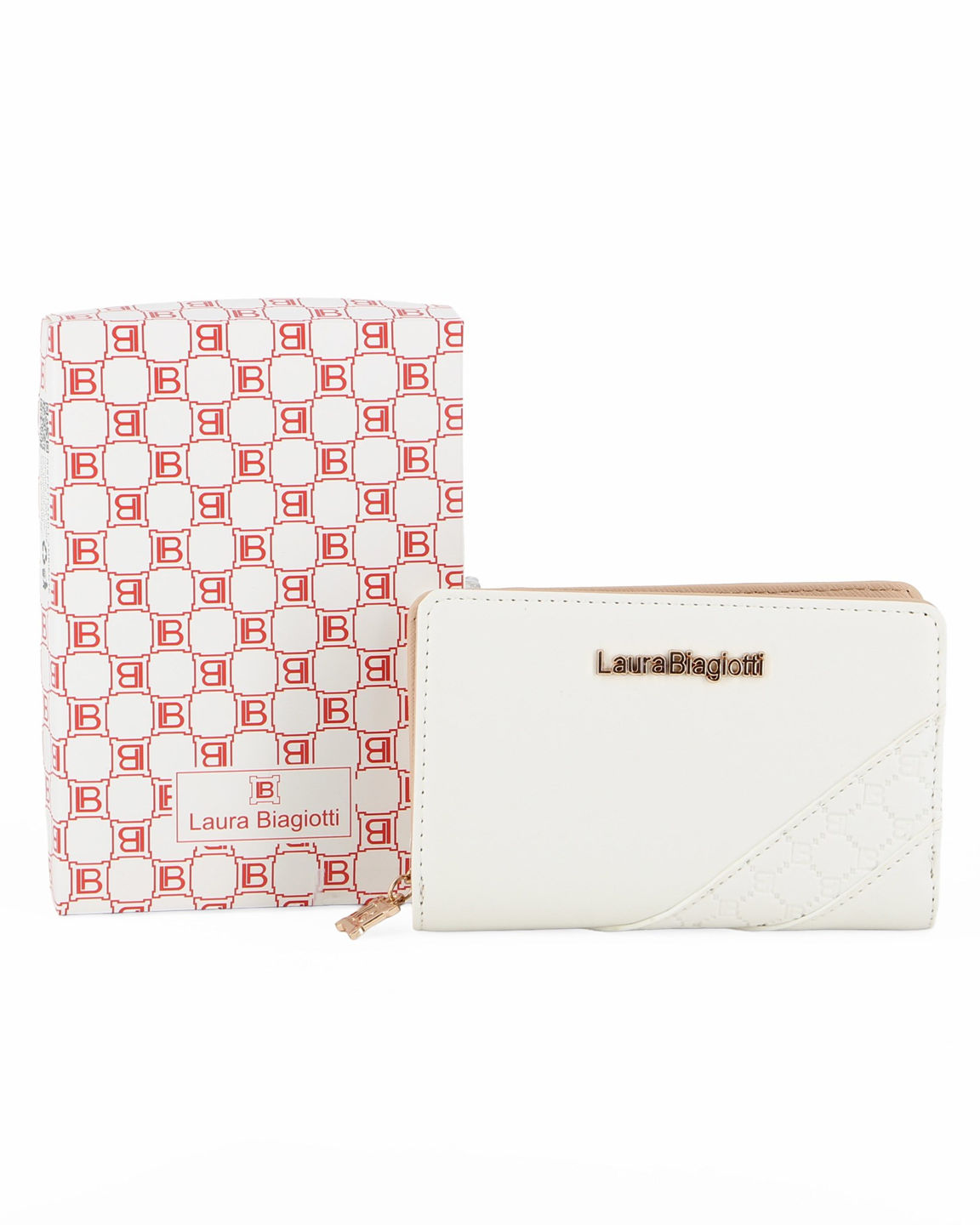 LAURA BIAGIOTTI - Portafoglio bianco con tre scomparti e inserto loggato