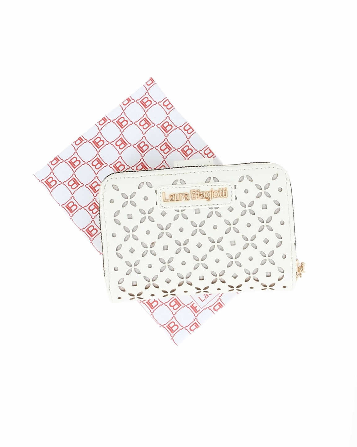 LAURA BIAGIOTTI - Portafoglio bianco traforato da donna