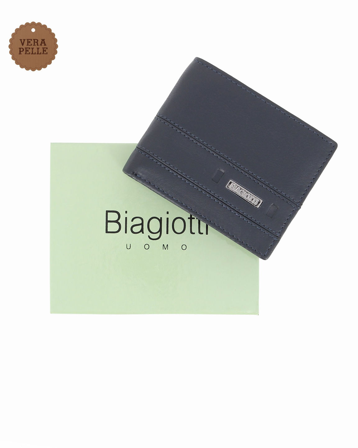 LAURA BIAGIOTTI - Portafoglio blu da uomo in VERA PELLE