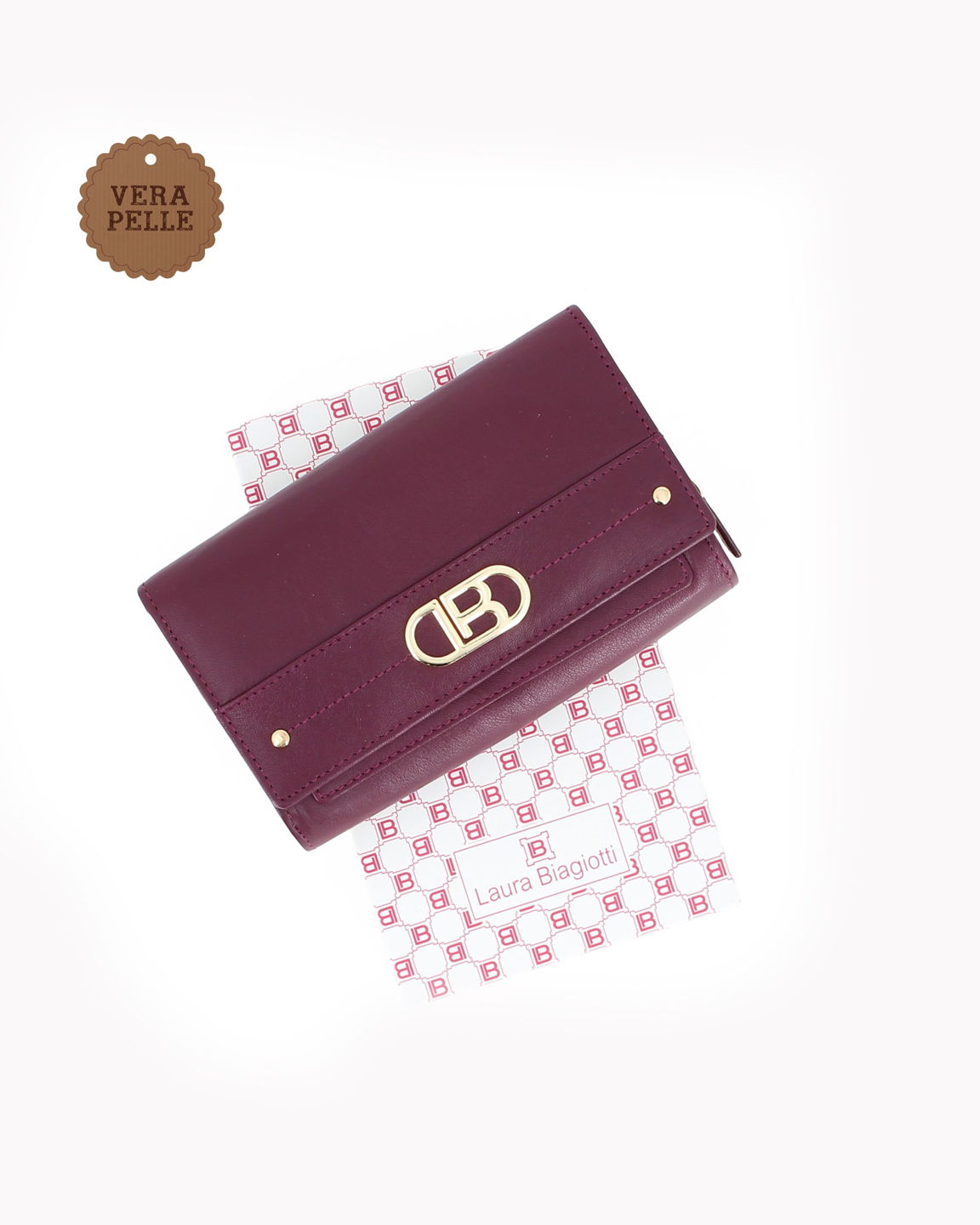 LAURA BIAGIOTTI - Portafoglio bordeaux con patta e logo frontale