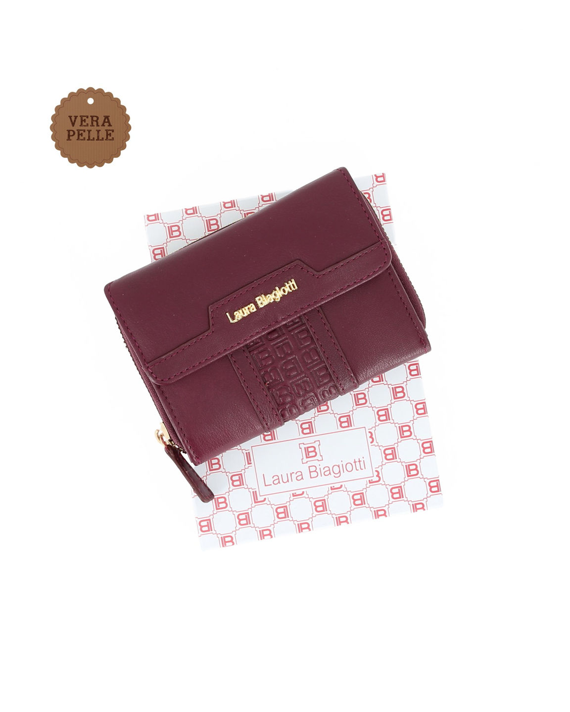 LAURA BIAGIOTTI - Portafoglio bordeaux con patta e tasca posteriore
