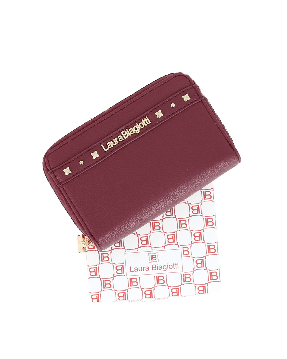LAURA BIAGIOTTI - Portafoglio bordeaux da donna con doppia cerniera, dettaglio borchie