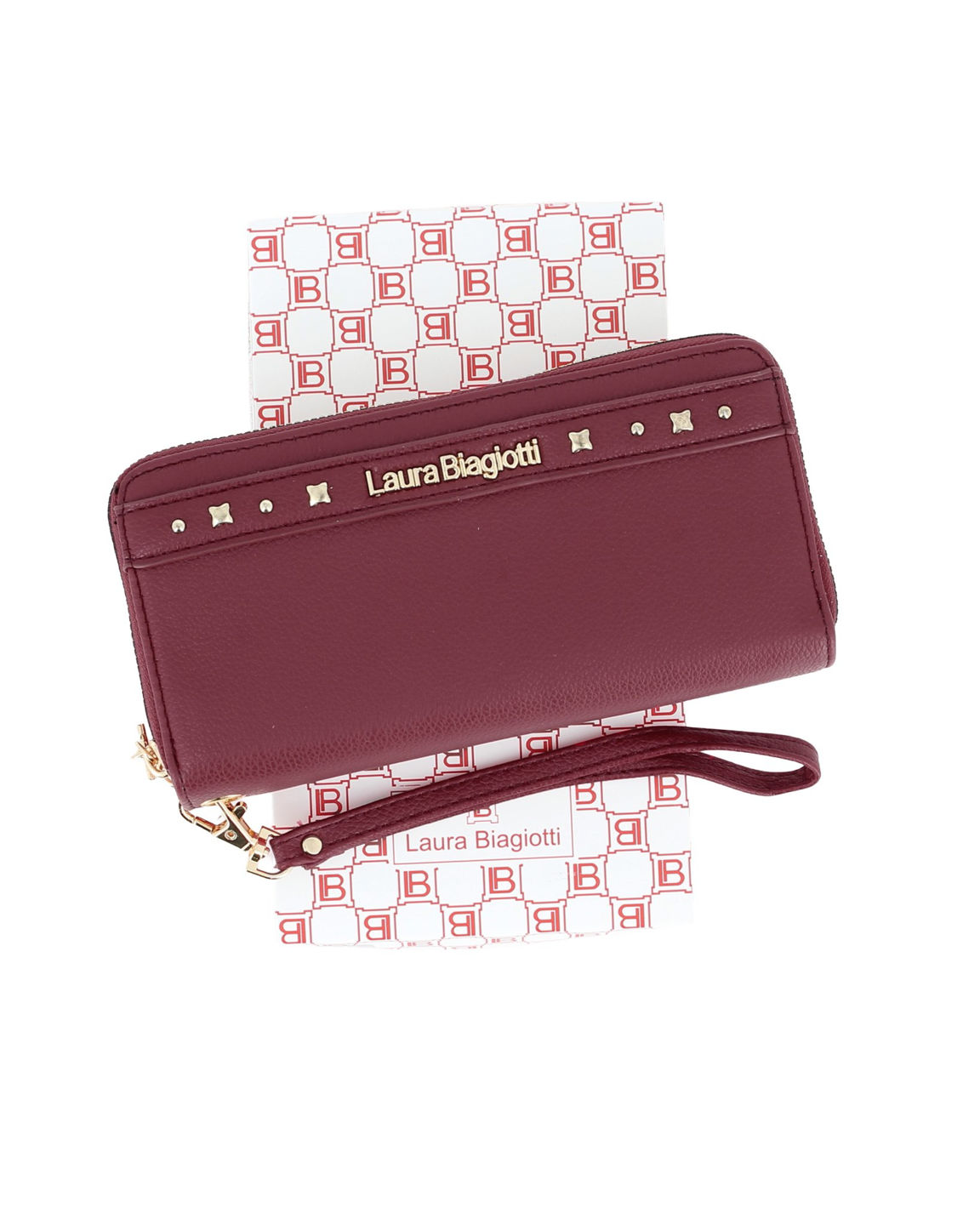LAURA BIAGIOTTI - Portafoglio bordeaux da donna con doppia cerniera e polsiera removibile, dettaglio borchie