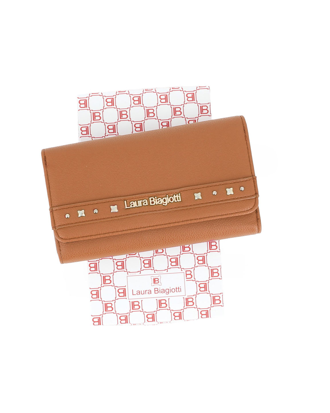 LAURA BIAGIOTTI - Portafoglio cognac da donna con dettaglio borchie sulla patta