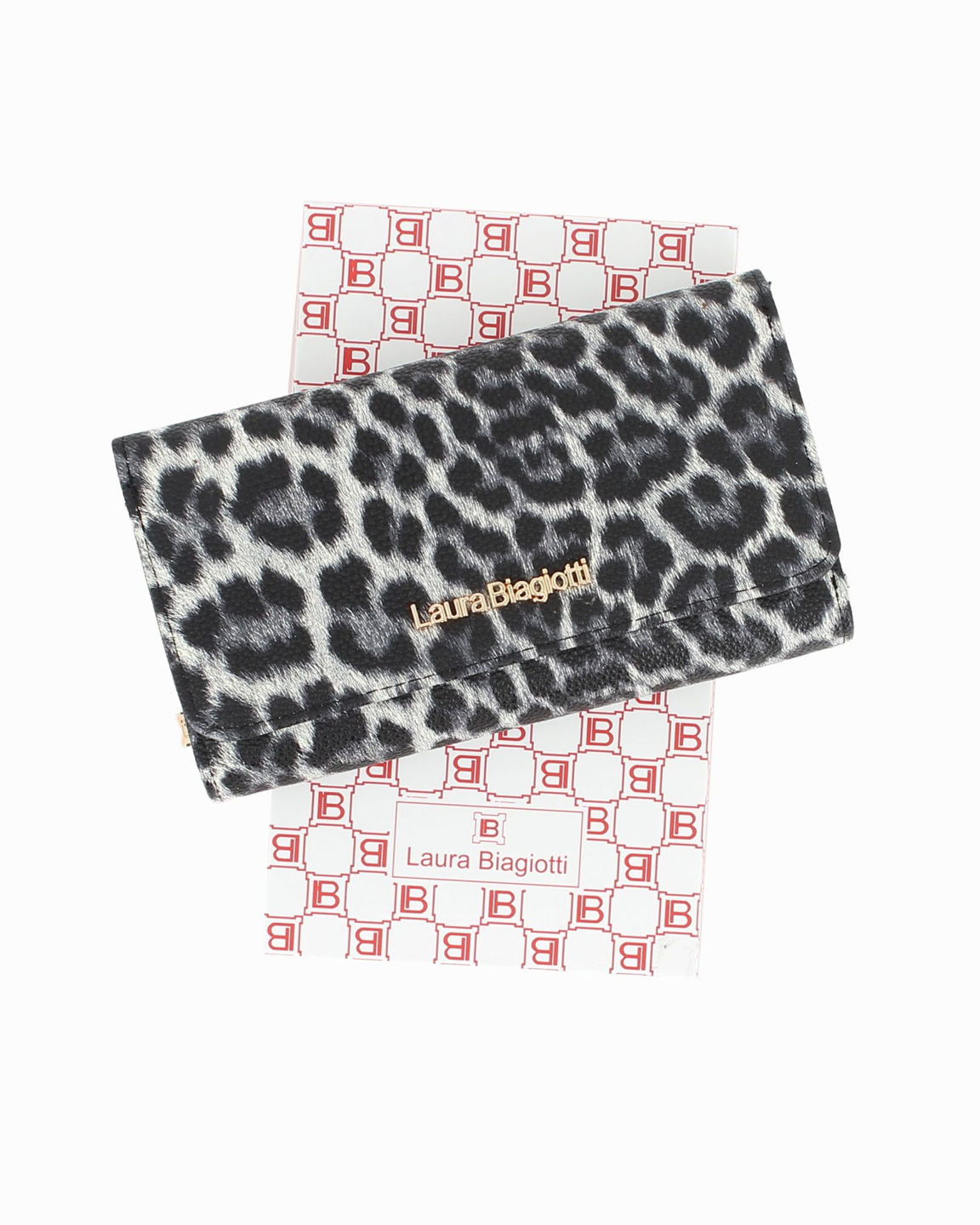 LAURA BIAGIOTTI - Portafoglio leopardato nero da donna con patta