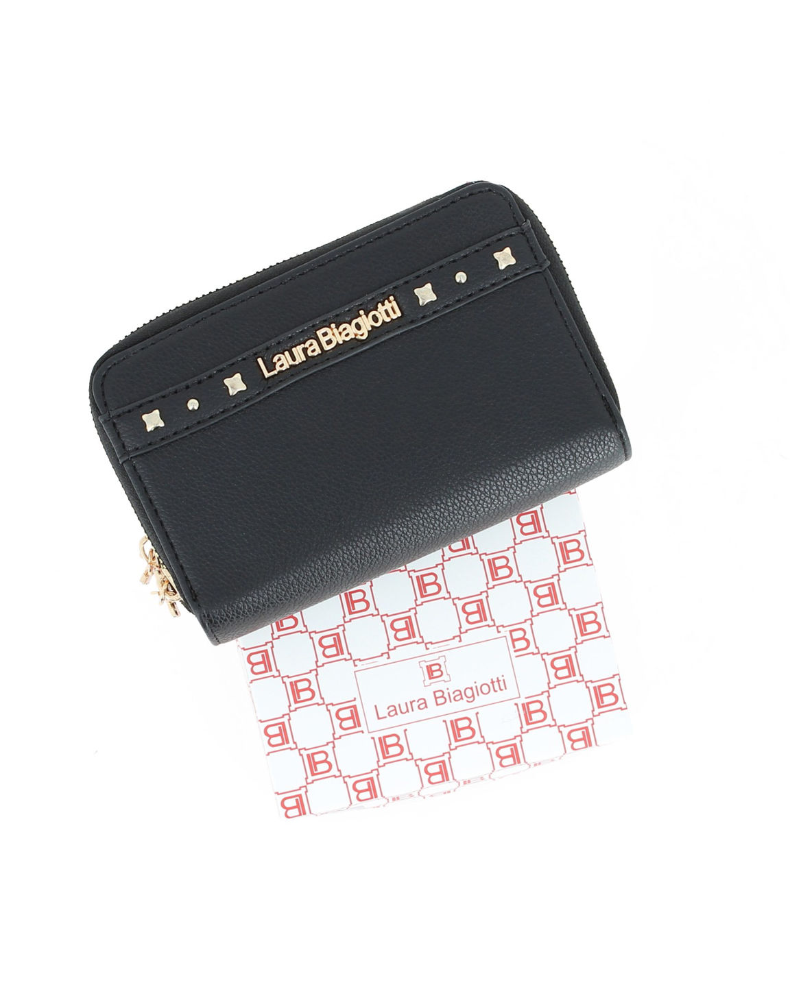 LAURA BIAGIOTTI - Portafoglio nero da donna con doppia cerniera, dettaglio borchie