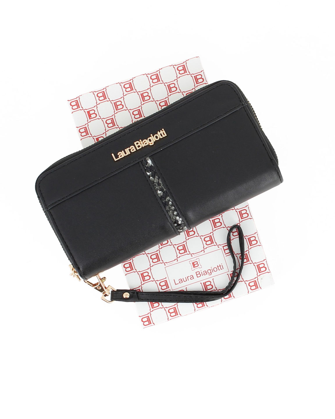 LAURA BIAGIOTTI - Portafoglio nero da donna con doppia cerniera e inserto in cocco, polsiera removibile