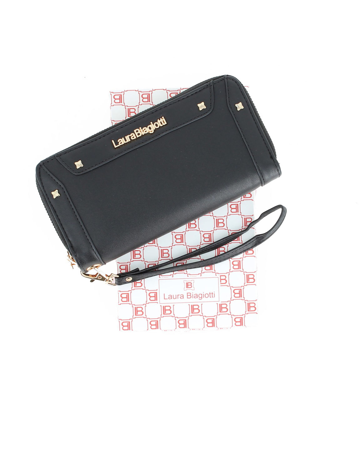 • LAURA BIAGIOTTI - Portafoglio nero da donna con doppia cerniera e polsiera removibile