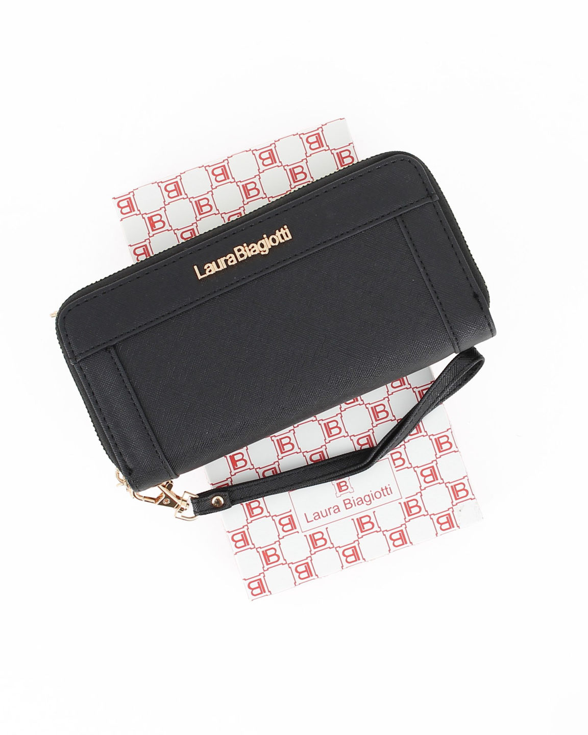LAURA BIAGIOTTI - Portafoglio nero da donna con doppia cerniera e polsiera removibile