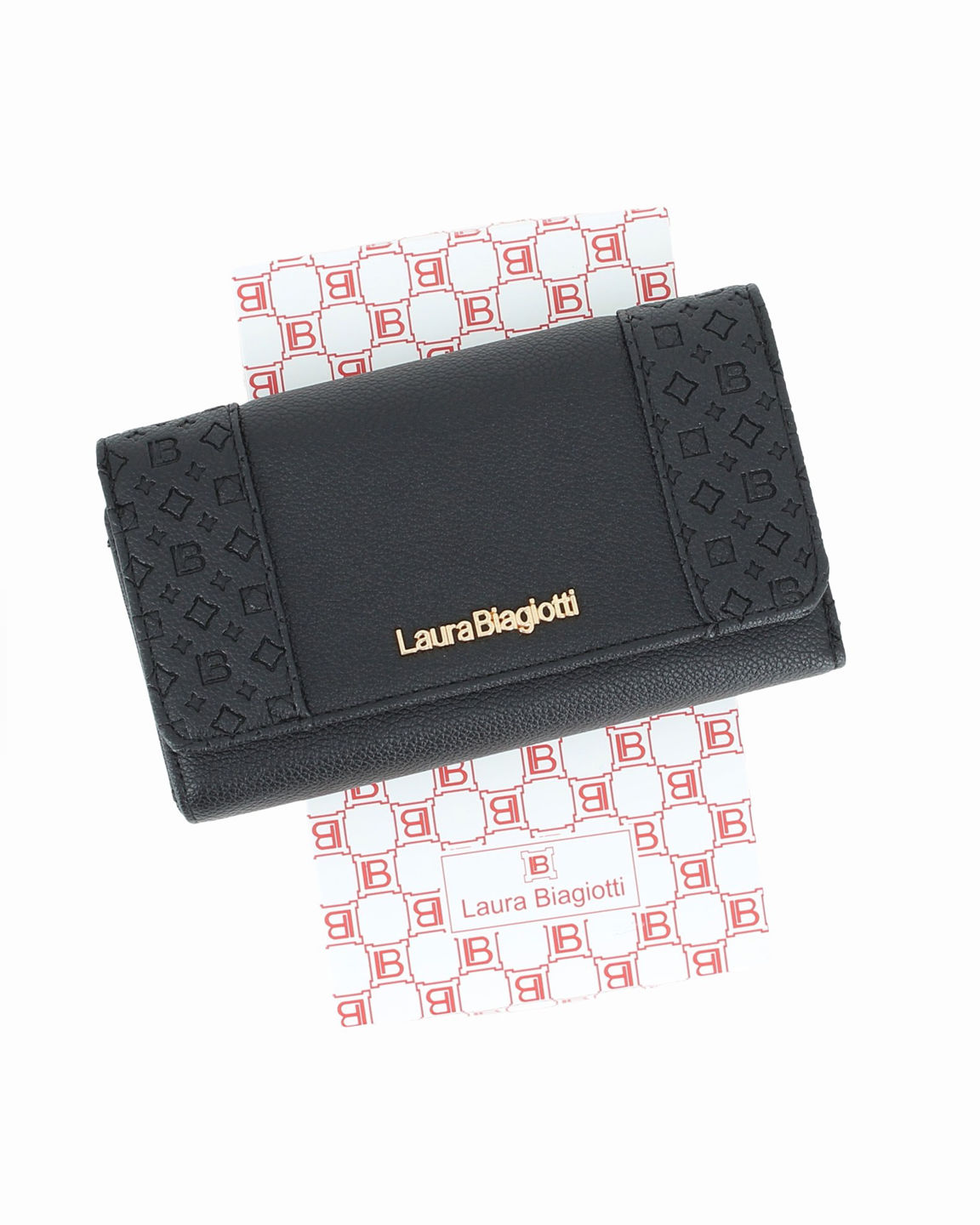 LAURA BIAGIOTTI - Portafoglio nero da donna con patta loggata