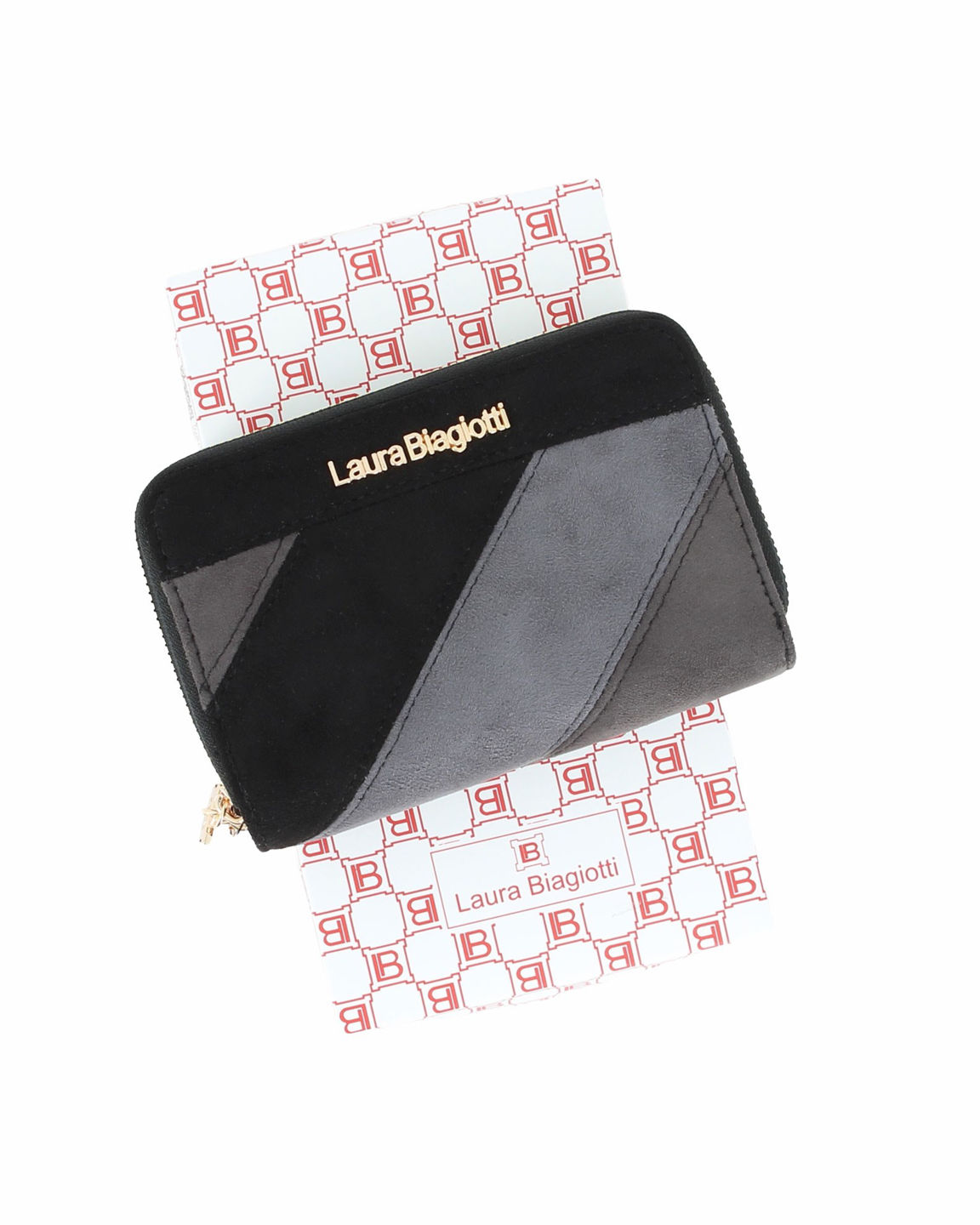 LAURA BIAGIOTTI - Portafoglio nero scamosciato da donna con doppia cerniera